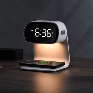 골드앤우드 무선충전시계 알람 무드등 3in1 탁상 침대용 KC인증, 1개, 화이트