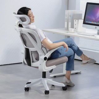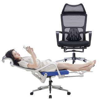 누울 수 있음 사무용 의자 편안한 등받이 허리 보호 컴퓨터 메쉬 의자, 화이트+그레이