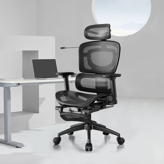 레퓰리 인체공학의자 허리받침 조절 사무실의자 리클라이닝 메쉬의자 자세교정 컴퓨터의자 게이밍의자 발받침, 블랙