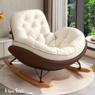 에덴레스트 무중력 레트로 리클라이너 쇼파 흔들 수유 의자 발받침 1인용 독서 안락 체어, 가죽, 브라운화이트