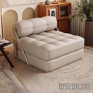 파요퍼니처 푹신한 1인용 접이식 소파 패브릭 소파베드 쇼파 1인 모듈 카우치쇼파 거실, 화이트가죽