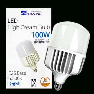LED 크림벌브 100W 공장등 야외 보안등 주광색 E26 유튜브 개인방송 사진 촬영 조명 램프 E26 주광, 주광색/ 100W(E26), 1개