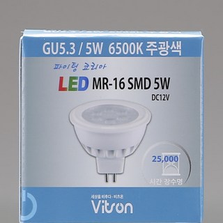 천지몰 MR-16 LED램프 5W 12V GU5.3 주광색 비츠온, 1개